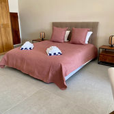 La cuisine et la chambre sont inspirés par l'effets béton au sol.